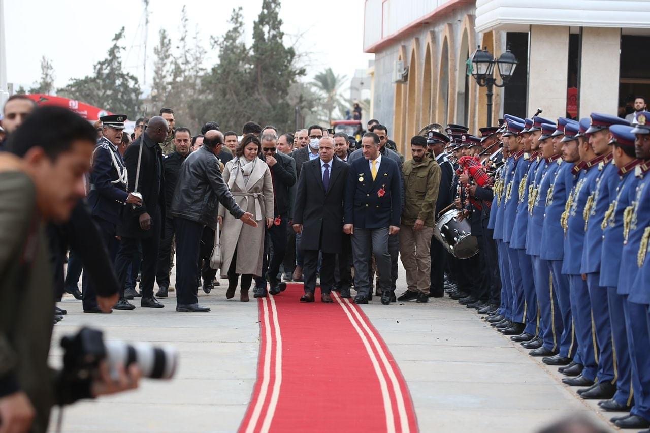 وصول فخامة السيد عبدالله اللافي عضوا المجلس الرئاسي و السيدة نجلاء المنقوش وزيرة الخارجية الليبية للمنصة الشرفية لمتابعة أمسية سباقات نهائي كأس قوس ماركوس الدولي .