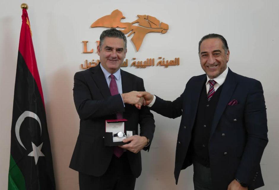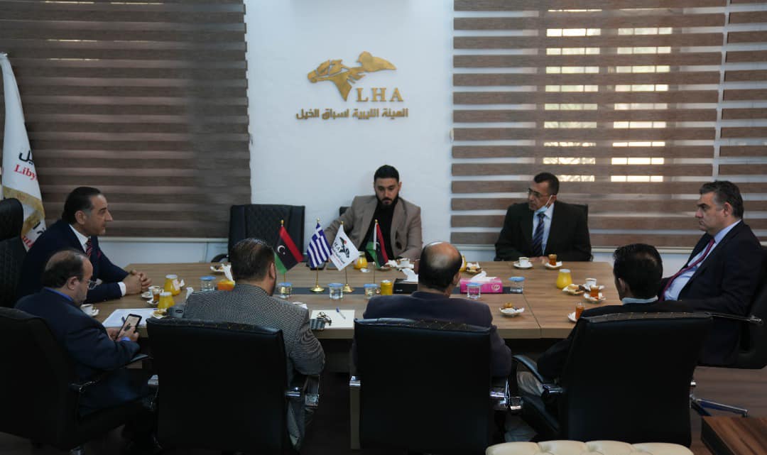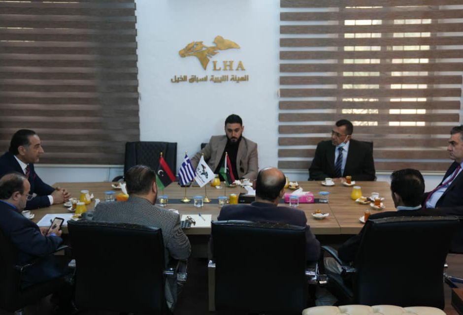 استقبل السيد رئيس مجلس ادارة الهيئة الليبية لسباق الخيل يوم الاثنين الموافق 03 من شهر يناير الجاري القائم بالاعمال لسفارة جمهورية اليونان حيث رحب السيد رئيس مجلس الادارة بسعادة السفير والوفد المرافق له وتم خلال هذا اللقاء بحث اوجه التعاون بين الهيئة الليبية لسباق الخيل ونظيرتها في اليونان حيث اكد السفير حرص بلاده على تطوير العلاقات الثنائية بين البلدين .
