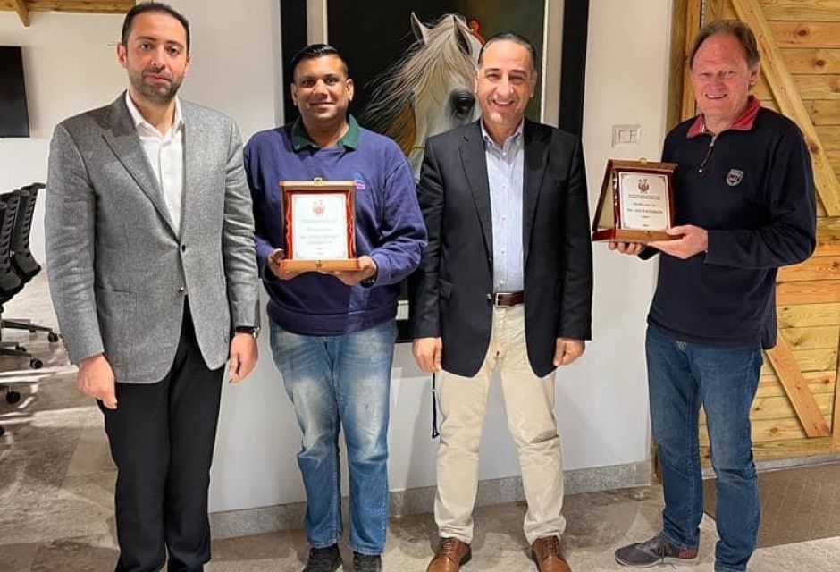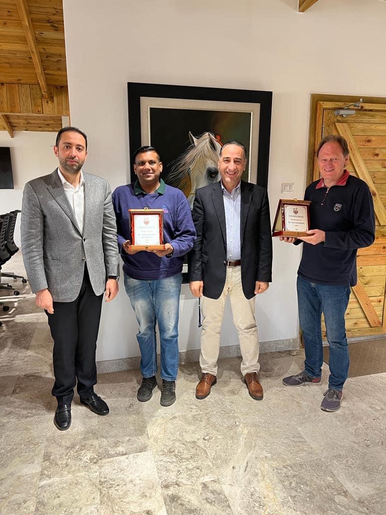 التقى السيد رئيس الهيئة الليبية لسباق الخيل برئيس جمعية مربي الخيول العربية ، وناقش في هذا الاجتماع العديد من الموضوعات حول الرؤية المستقبلية لسباق الخيل في ليبيا ، وبحضور الحكام الدوليين ، تم مناقشة كيفية تطوير الحكام المحليين من خلال التواصل،مع الخبرات العالمية في هذا المجال ، وفي نهاية اللقاء قدم رئيس الجمعية درع جمعية مربي الخيول العربية للحكام الضيوف.