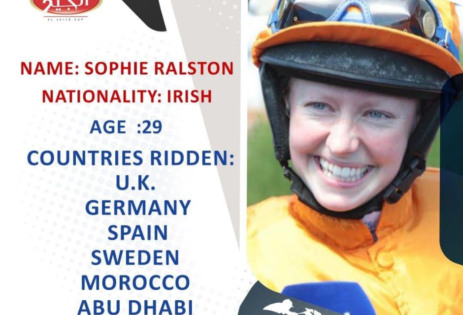 ::الراكب: SOPHIE RALSTONالجنسية: 🇮🇪العمر : 29الوزن : 51المشاركات : U.K. – Germany – Spain – Sweden – Morocco – Abu Dhabi – Cyprus