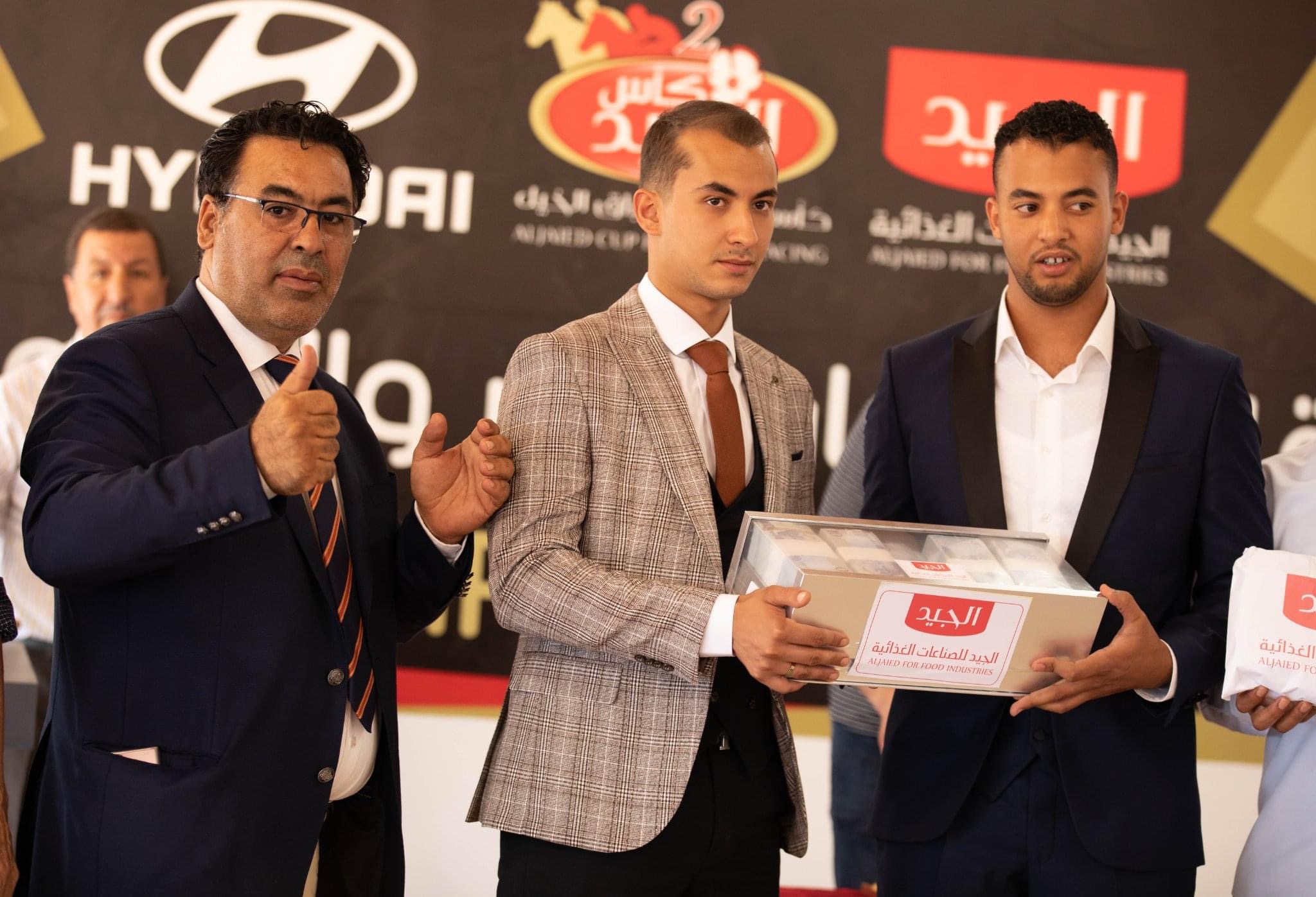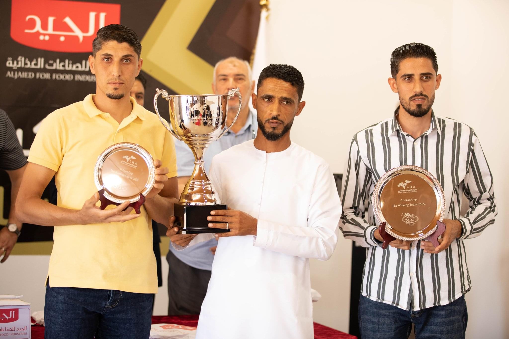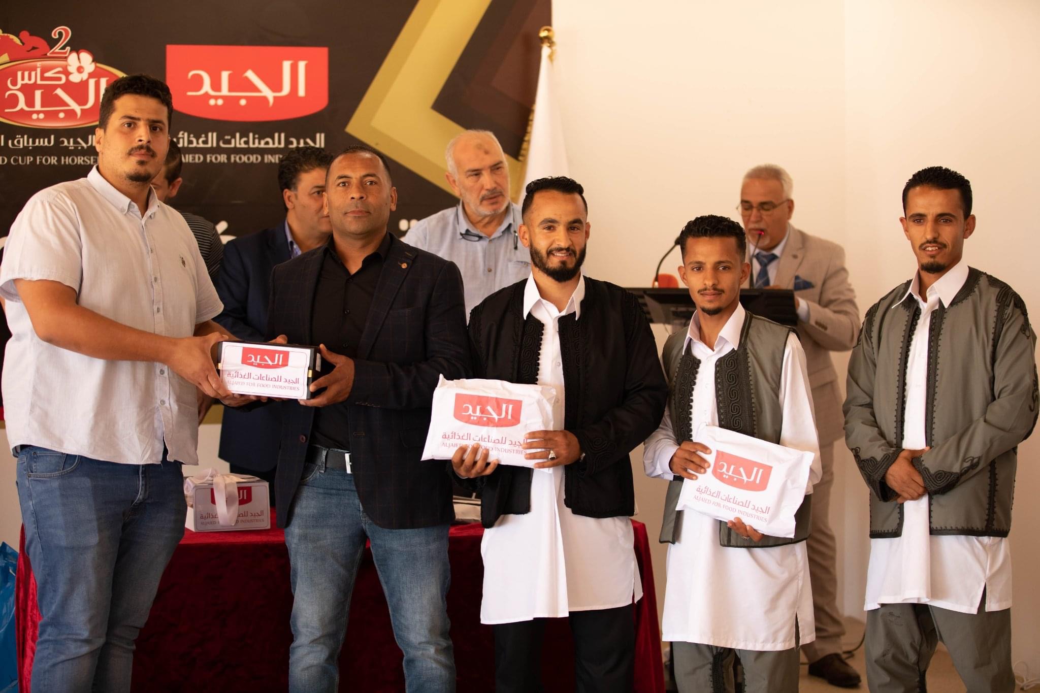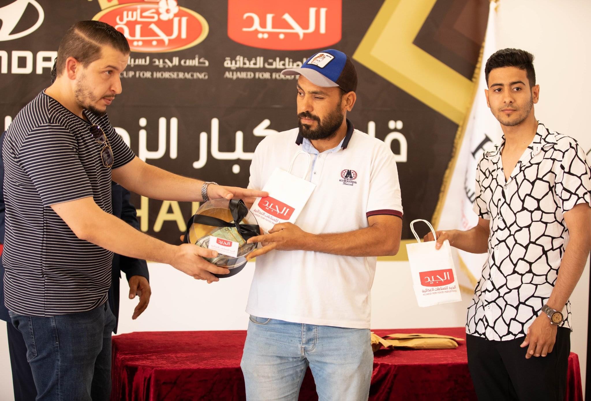 السيد/ رئيس شركة الجيد للصناعات الغذائية ، والسادة / رئيس وأعضاء مجلس الإدارة بالهيئة الليبية لسباق الخيل ومدير مضمار مدرسة شهداء مصراته لسباق الخيل وعدد من اعيان وفرسان المدينة والمهتمين بسباقات الخيل ، كما حضر هذا الحفل الملاك والمدربين والركاب الفائزين في الأشواط النهائية لكاس الجيد ، وخلال هذه الاحتفالية القى السيد حسين محمد الطاهر عيسى ، عضو مجلس إدارة شركة الجيد للصناعات الغذائية كلمة رحب فيها بالحاضرين مهنئا الفائزين ، مجددا تأكيده على عزم شركة الجيد للصناعات الغذائية على رعاية كاس الجيد في نسخته الثالثة 2023.