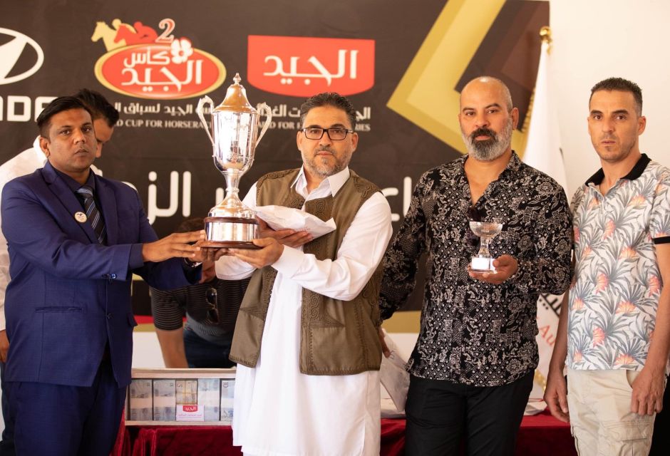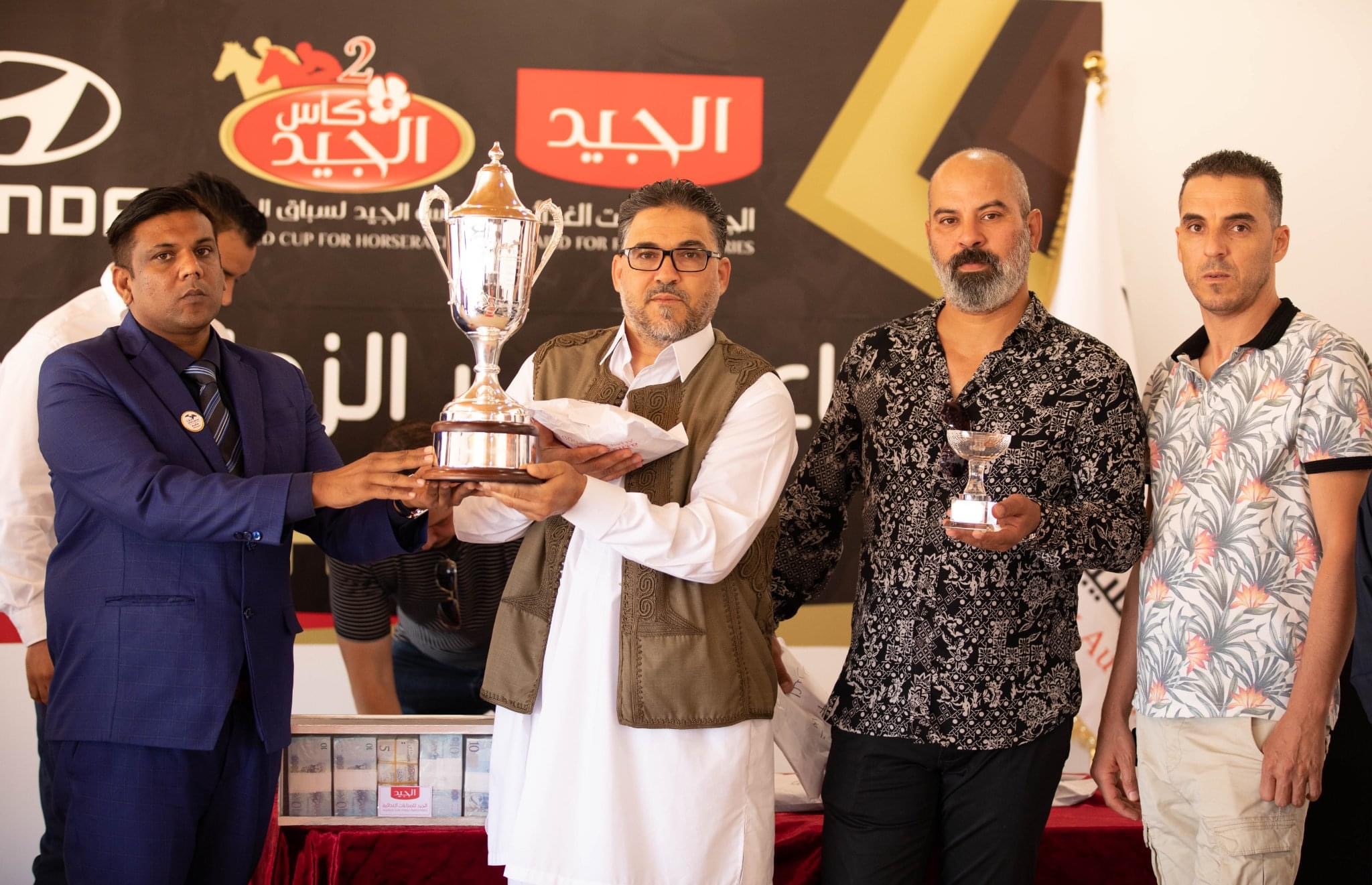 اليوم اسدل الستار على نهائي #كأس_الجيد لسباق الخيل في نسخته الثانية وذلك بإقامة احتفالية نظمت بمضمار شهداء مصراته لسباق الخيل بمدينة مصراته ، حيث قدمت فيه الجوائز المالية والكؤوس للفائزين بأشواط السباق النهائية لكأس الجيد ، وقد حضر هذه الاحتفالية كل من