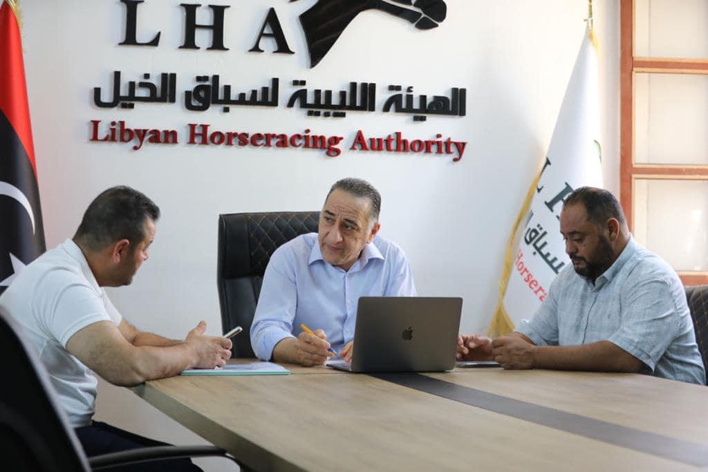 عقد صباح اليوم الاحد الموافق 1 اكتوبر 2023مبمقر الهيئة الليبية لسباق الخيل الاجتماع الرابع لسنة2023م لمجلس الادارة لمنا…