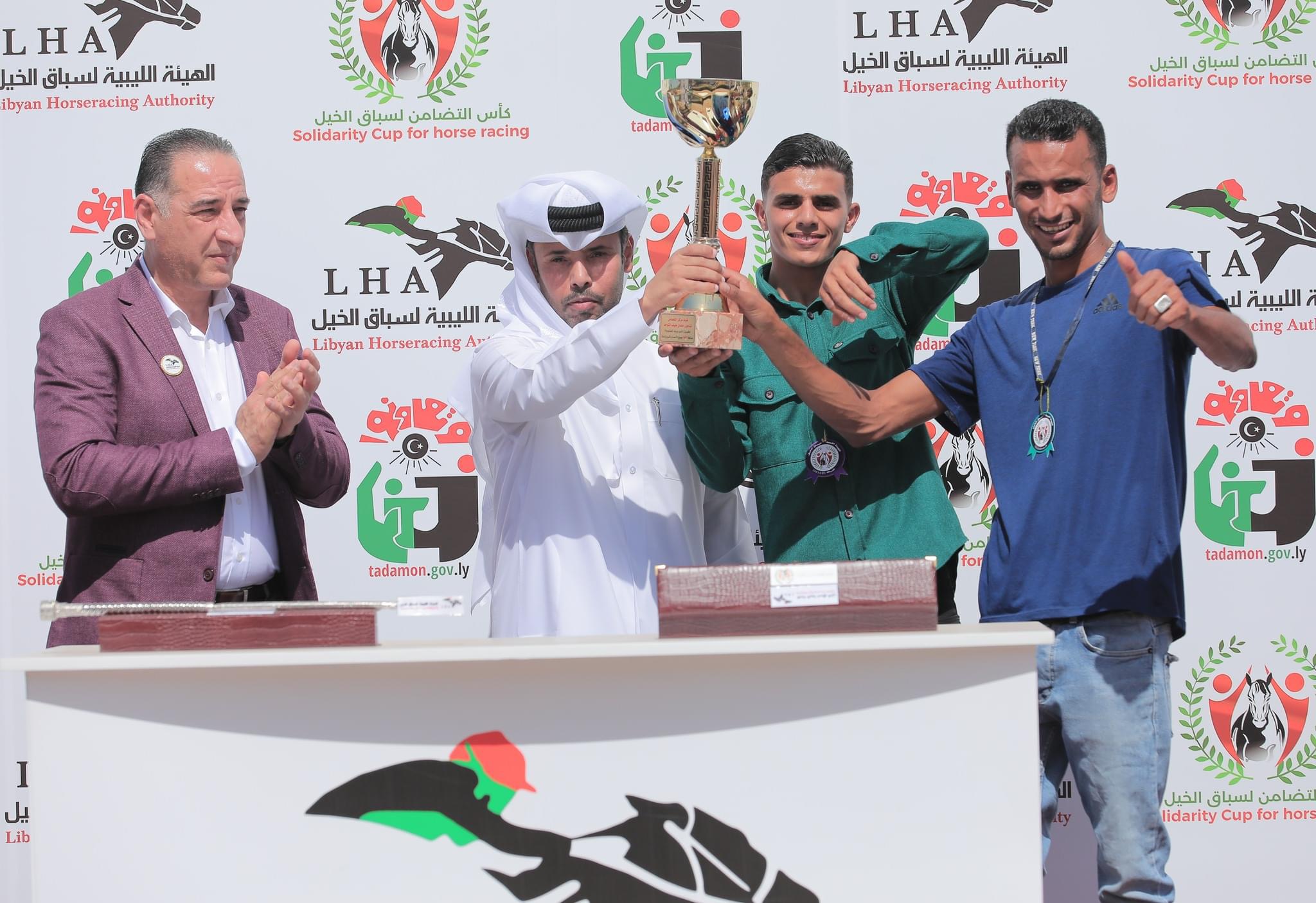 بمتابعة جماهيرية كبيرة من عشاق ومتابعي سباقات الخيل في ليبيا اسدل الستار على النسخة الاولى من نهائي كاس التضامن في نسخته الاولى الذي اقيم على ميدان ابي ستة لسباق الخيل ، وذلك يوم الجمعة الموافق 4 من اغسطس الجاري بحضور كل من السيد رئيس واعضاء مجلس الادارة بالهيئة الليبية لسباق ، والسيد رئيس صندوق التضامن الاجتماعي، وعدد من اعضاء مجلسي النواب والدولة وعدد من عمداء البلديات