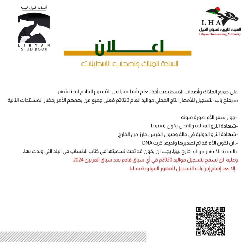 بناءا على قرار مجلس إدارة الهيئةرقم (35) لسنة 2024مبشأن تعديل و إضافة بعض الأحكامللائحة الفنية الخاصة بقواعد سباق الخيل