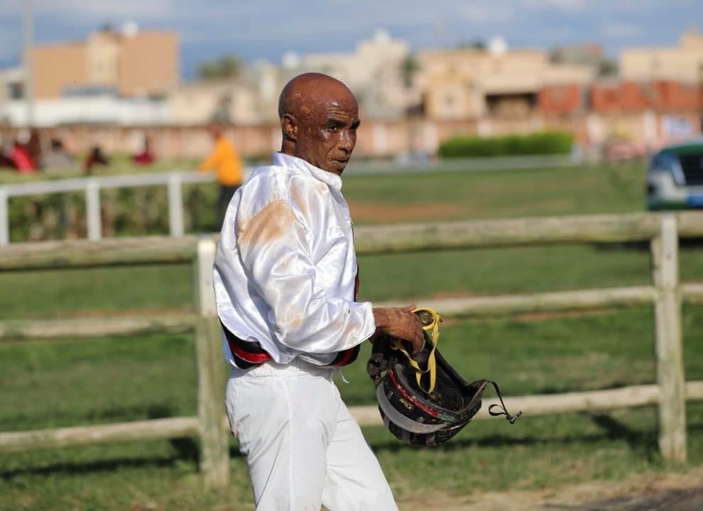 نحمد الله على سلامة الراكب محمد ادم بعد تعرضه لسقوط من صهوة الجواد زهرة الوفاء في الشوط الثالث .